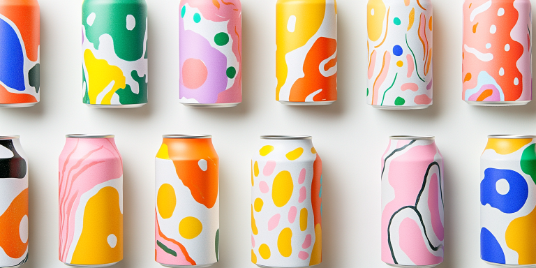 The collection showcases an energetic fusion of vibrant hues and dynamic compositions, creating a fresh and engaging visual experience. The seamless blend of bright, pastel, and bold tones gives each can a distinctive character, appealing to creative and modern consumers.