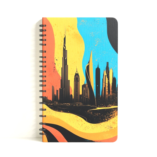 A visually captivating notebook collection that celebrates Dubai’s iconic skyline, blending urban sophistication with artistic expression. These designs feature stylized cityscapes, flowing desert dunes, and a vibrant color palette of golden yellows, deep blues, and sunset oranges, evoking the dynamic energy of the city.