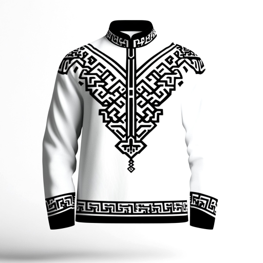 A contemporary jacket collection blending traditional tribal motifs with modern minimalism. The designs feature intricate black geometric patterns on a crisp white base, reflecting cultural heritage with a futuristic edge. Bold symmetry, fine line details, and high-contrast aesthetics create a visually powerful statement.