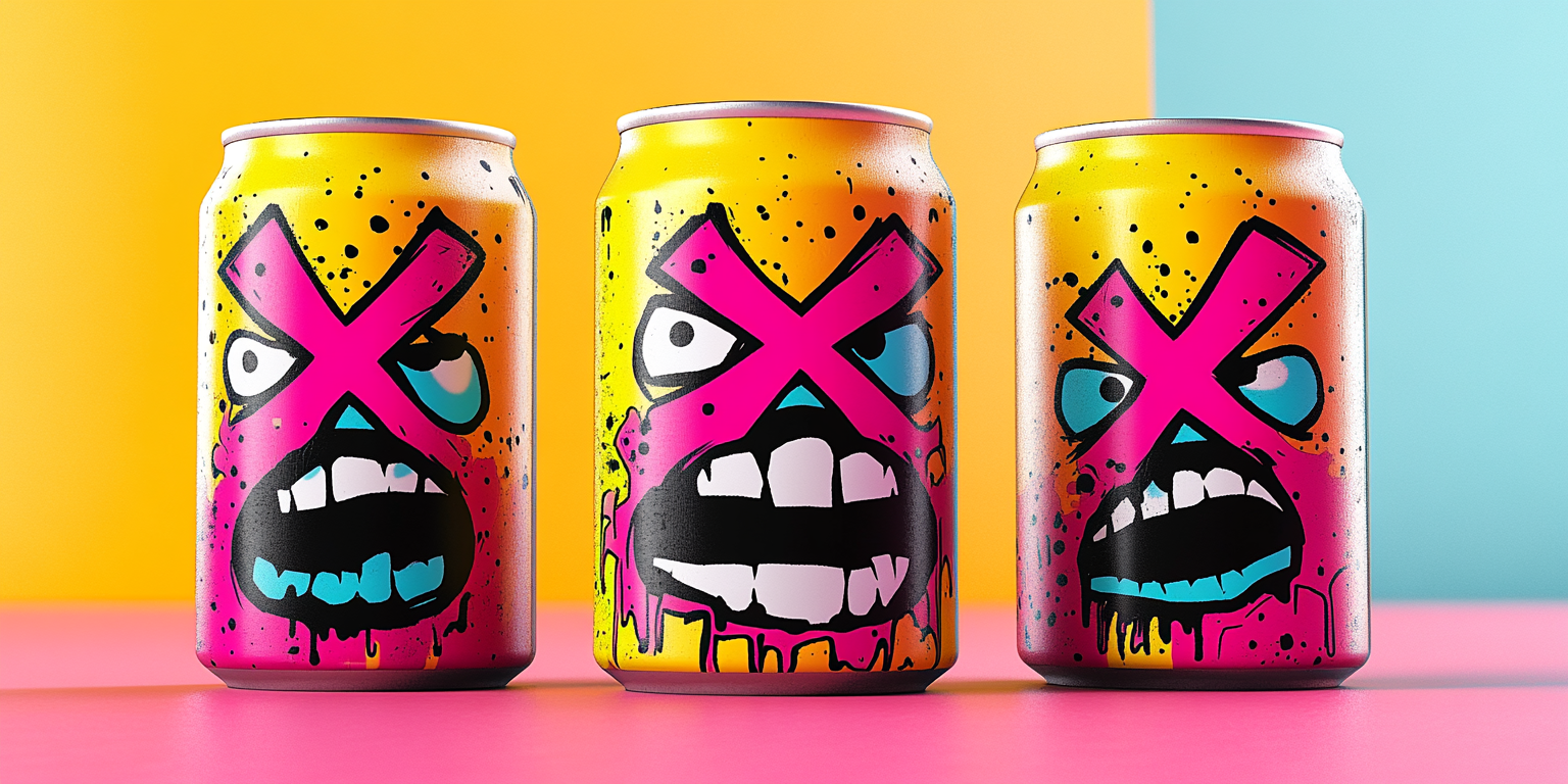 The Bold Energy Beverage Collection is a high-impact, visually striking line designed for a brand that embraces intensity and attitude. With aggressive, graffiti-inspired artwork and an electrifying color scheme, this collection breaks conventional design norms to create a rebellious and energetic brand identity.